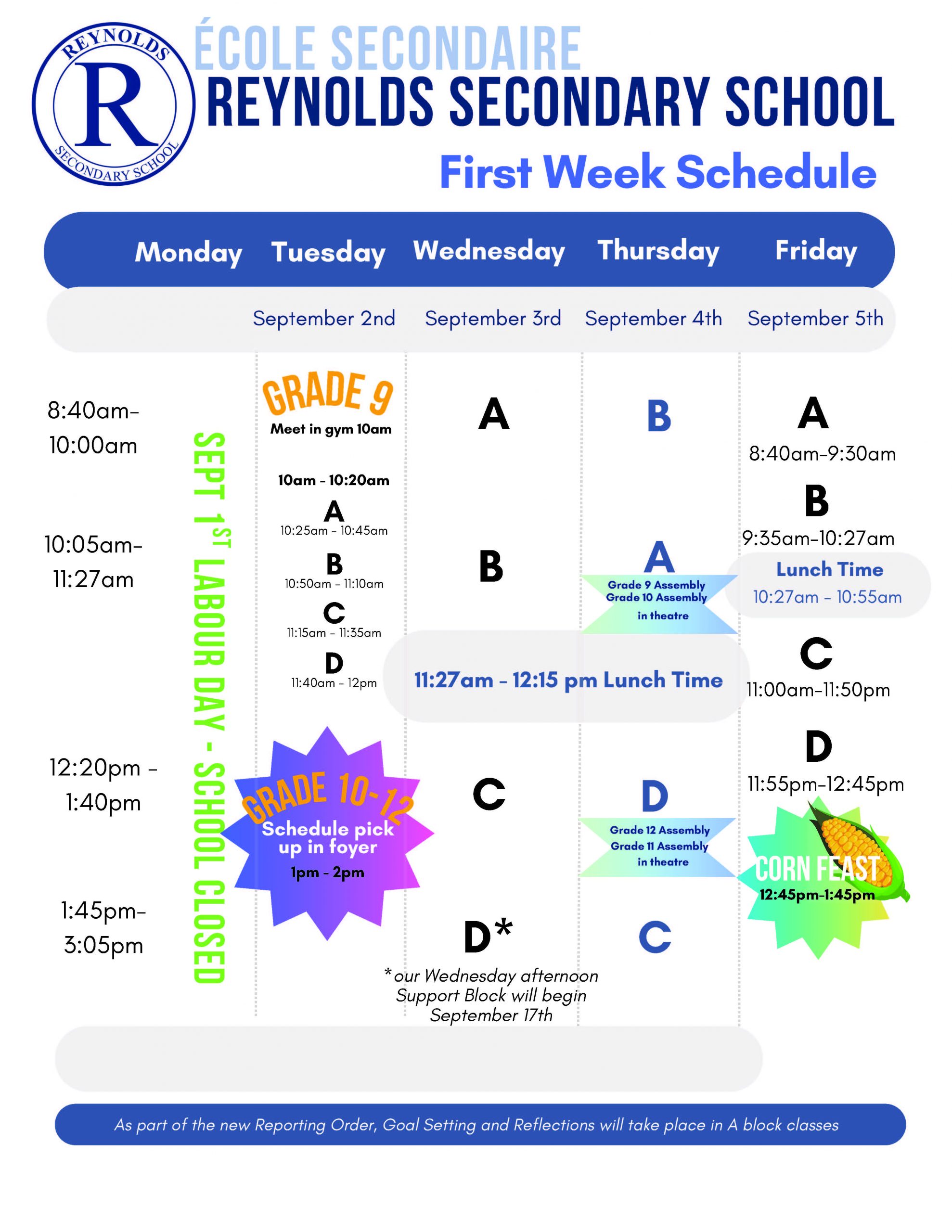 First Week Schedule – September 2 – 5 2025-2026 (printable)